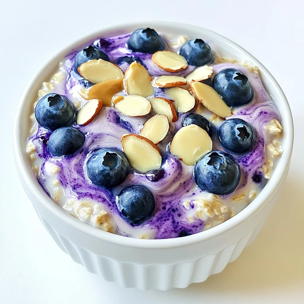 Um die perfekte Konsistenz der Blaubeer Mandel Übernacht Haferflocken zu erreichen, kannst du die Flüssigkeit anpassen. Möchtest du es dünnflüssiger? Füge einfach mehr Mandelmilch hinzu. Für eine dickere Variante lasse die Mischung länger im Kühlschrank. Die Wahl der Milch ist ebenfalls wichtig. Mandelmilch ist eine tolle Option, aber du kannst auch Hafermilch oder Sojamilch verwenden. Achte darauf, die Pflanzenmilch gut zu wählen, um den Geschmack zu verbessern.