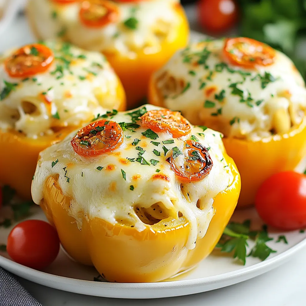 Für dieses köstliche Gericht brauchst du einige einfache Zutaten. Hier ist die Liste: - 4 große Paprika (jede Farbe) - 2 Tassen gekochtes Hähnchen, zerkleinert - 1 Tasse Fettuccine-Nudeln, gekocht und abgetropft - 1 Tasse cremige Alfredo-Sauce - 1 Esslöffel Cajun-Gewürz - 1 Teelöffel Knoblauchpulver - 1/2 Teelöffel schwarzer Pfeffer - 1 Tasse geriebener Mozzarella-Käse - 1/2 Tasse Kirschtomaten, halbiert - 1 Esslöffel Olivenöl Diese Zutaten sorgen für einen tollen Geschmack und eine schöne Textur. Die Gewürze machen den Unterschied. Cajun-Gewürz bringt Schärfe und Tiefe. Knoblauchpulver fügt einen herzhaften Geschmack hinzu. Schwarzer Pfeffer ergänzt die anderen Aromen. Diese Gewürze machen deine gefüllten Paprika einzigartig. Um das Gericht noch schöner zu machen, kannst du frische Petersilie verwenden. Sie bringt Farbe und Frische. Kirschtomaten fügen ebenfalls eine schöne Note hinzu. Wenn du magst, kannst du auch noch Parmesan-Käse darüber streuen. Das sieht toll aus und schmeckt noch besser. {{ingredient_image_2}} Heize deinen Ofen auf 190 °C (375 °F) vor. Dies ist wichtig, um die Paprika gleichmäßig zu garen. Bereite währenddessen alle Zutaten vor. Zerkleinere das Hähnchen und koche die Fettuccine-Nudeln. Halte alles bereit, um schnell arbeiten zu können. Nimm die großen Paprika und schneide die Oberseite ab. Entferne die Samen und das Innere. Stelle die Paprika aufrecht in eine Auflaufform. In einer großen Schüssel vermische das zerkleinerte Hähnchen, die gekochten Fettuccine, die Alfredo-Sauce und die Gewürze. Rühre gut um. Füge die halbierten Kirschtomaten hinzu und falte sie vorsichtig ein. Fülle jede Paprika großzügig mit der Mischung. Bestreue die Paprika mit Mozzarella-Käse und beträufle sie mit Olivenöl. Decke die Auflaufform mit Aluminiumfolie ab. Backe die gefüllten Paprika für 25 Minuten. Entferne dann die Folie und backe sie weiter für 10-15 Minuten. Achte darauf, dass der Käse goldbraun und sprudelnd wird. Nimm die Paprika aus dem Ofen und lasse sie kurz abkühlen. Garniere sie mit frischer Petersilie vor dem Servieren. Um die Paprika richtig zu füllen, achte darauf, sie nicht zu überladen. Wenn du zu viel Mischung in die Paprika füllst, kann sie platzen. Verwende einen Esslöffel, um die Füllung gleichmäßig zu verteilen. Das hilft, die Paprika schön zu formen. Stelle sicher, dass du die Paprika gut auskratzst. So bleibt mehr Platz für die köstliche Mischung. Wähle eine hochwertige Alfredo-Sauce für den besten Geschmack. Du kannst auch eine selbstgemachte Sauce verwenden, wenn du Zeit hast. Mische die Sauce gut mit den anderen Zutaten, damit jeder Bissen cremig und vollmundig ist. Wenn du es schärfer magst, füge etwas mehr Cajun-Gewürz hinzu. Das bringt mehr Pfiff in das Gericht. Mozzarella ist eine tolle Wahl, aber du kannst auch anderen Käse verwenden. Cheddar bringt mehr Tiefe, während Parmesan einen nussigen Geschmack hinzufügt. Mische verschiedene Käsesorten für mehr Komplexität. Streue den Käse vor dem Backen großzügig über die Füllung, damit er schön schmilzt und eine goldene Kruste bildet. Pro Tipps Wahl der Paprika: Verwende verschiedene Farben von Paprika, um dem Gericht nicht nur einen geschmacklichen, sondern auch einen optischen Reiz zu verleihen. Alfredo-Sauce selbst machen: Für einen intensiveren Geschmack kannst du die Alfredo-Sauce selbst zubereiten. Frisch zubereitete Sauce hat einen viel reichhaltigeren Geschmack. Käsevariationen: Experimentiere mit verschiedenen Käsesorten, wie Cheddar oder Gouda, um dem Gericht einen einzigartigen Twist zu geben. Vorbereitung im Voraus: Du kannst die gefüllten Paprika im Voraus zubereiten und sie im Kühlschrank aufbewahren, bis du bereit bist, sie zu backen. {{image_4}} Du kannst diese leckeren gefüllten Paprika ganz einfach vegetarisch machen. Lass das Hähnchen weg und füge stattdessen gebratene Champignons oder Zucchini hinzu. Du kannst auch schwarze Bohnen verwenden, um eine proteinreiche Füllung zu schaffen. Die cremige Alfredo-Sauce bleibt gleich und sorgt für den gleichen köstlichen Geschmack. Die Füllung muss nicht immer gleich sein. Du kannst verschiedene Fleischsorten wie Pute oder Hackfleisch verwenden. Auch Garnelen passen gut zu diesem Gericht. Wenn du etwas anderes ausprobieren möchtest, nimm Quinoa oder Reis als Basis. Experimentiere mit verschiedenen Gemüsesorten wie Spinat oder Paprika, um deine eigene Mischung zu finden. Jeder hat andere Vorlieben. Du kannst das Cajun-Gewürz anpassen, je nachdem, wie scharf du es magst. Füge mehr Knoblauchpulver hinzu, wenn du den Knoblauchgeschmack magst, oder benutze weniger, wenn du es milder magst. Auch der Käse kann variieren. Probiere Cheddar oder einen würzigen Käse für einen anderen Geschmack. Um gefüllte Paprika frisch zu halten, lege sie in einen luftdichten Behälter. Du kannst auch Frischhaltefolie verwenden. Stelle sicher, dass die Paprika vollständig abgekühlt sind, bevor du sie einlegst. So bleibt der Geschmack erhalten. Wenn du Reste aufwärmen möchtest, benutze den Ofen oder die Mikrowelle. Für den Ofen, heize ihn auf 175 °C vor. Lege die Paprika in eine Auflaufform und decke sie mit Folie ab. Backe sie etwa 15 Minuten, bis sie warm sind. In der Mikrowelle, erwärme sie in 1-Minuten-Intervallen, bis sie heiß sind. Im Kühlschrank halten sich die gefüllten Paprika bis zu 3 Tage. Achte darauf, sie gut zu verpacken. Im Gefrierschrank kannst du sie bis zu 2 Monate aufbewahren. Stelle sicher, dass du sie in einem gefrierfesten Behälter oder Beutel verpackst, um Gefrierbrand zu vermeiden. Die Cajun Chicken Alfredo Stuffed Peppers brauchen insgesamt etwa 35 bis 40 Minuten im Ofen. Zuerst backen sie 25 Minuten mit Folie, dann weitere 10 bis 15 Minuten ohne. So wird der Käse schön goldbraun und sprudelnd. Diese Zeit sorgt dafür, dass die Paprika weich und die Füllung heiß wird. Ja, du kannst die Nudeln im Voraus kochen. Das spart Zeit beim Kochen der 