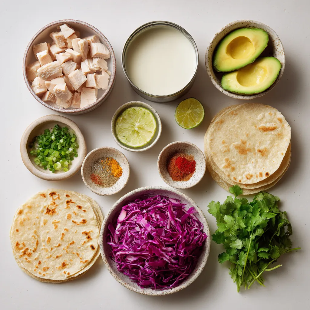 Diese Zutaten bilden die Grundlage für ein frisches und köstliches Taco-Erlebnis. Das Hähnchen bringt viel Protein, während die Kokosmilch einen tollen, cremigen Geschmack liefert. Limette sorgt für eine spritzige Frische, die perfekt zu den anderen Zutaten passt.