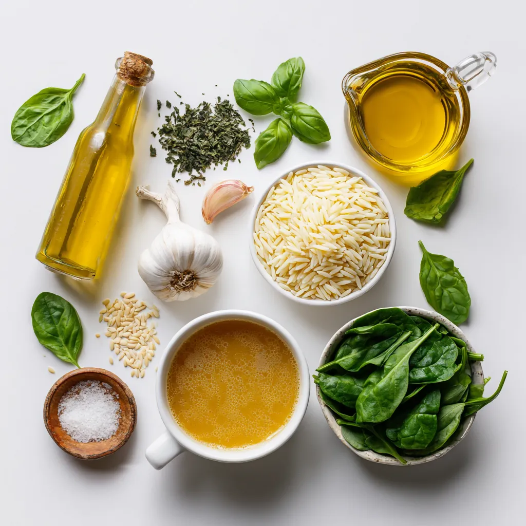 Die Mengen sind für vier Portionen gedacht. Du brauchst 1 Tasse Orzo-Pasta, um die Basis zu schaffen. Der Spinat gibt dem Gericht Farbe und Frische. Mit 1 Esslöffel Olivenöl wird der Knoblauch aromatisch. Die Brühe bringt Geschmack. Schlagsahne und Parmesan sorgen für die Cremigkeit. Muskatnuss gibt einen besonderen Kick.