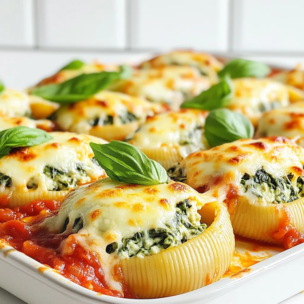 Die Jumbo-Pasta-Schalen sind groß und perfekt für die Füllung. Sie halten die Füllung gut und sind einfach zu essen. Frischer Spinat bringt Farbe und Geschmack. Ricotta ist cremig und macht die Füllung leicht. Mozzarella sorgt für eine schöne Schmelzschicht. Parmesan fügt Tiefe und einen herzhaften Geschmack hinzu. Das Ei bindet alles zusammen.