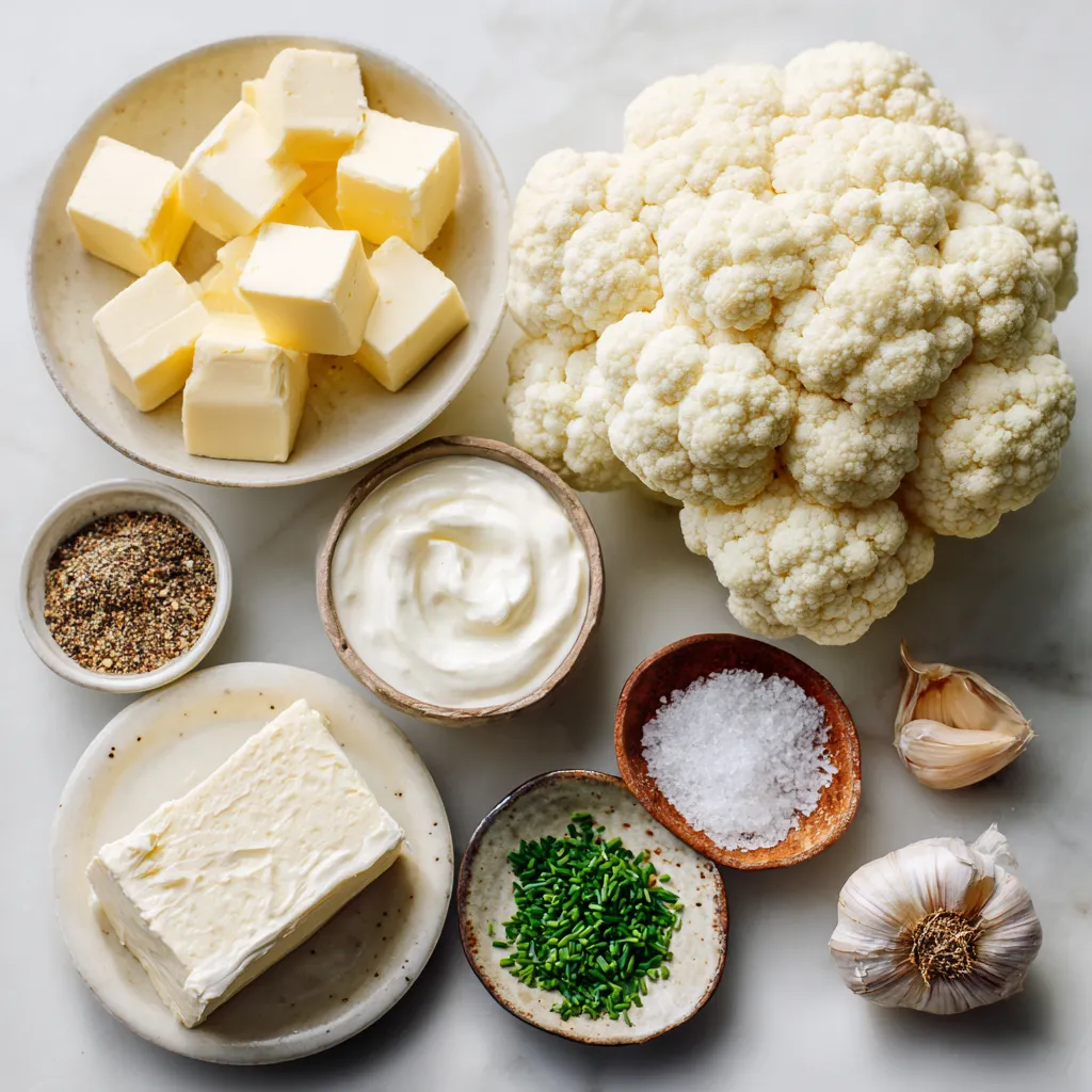 Hauptzutaten für cremige Blumenkohlmasse