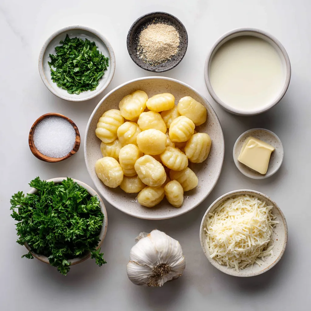 Die Hauptzutaten sind einfach und schnell zu finden. Kartoffelgnocchi sind weich und nehmen die Sauce gut auf. Butter bringt einen reichhaltigen Geschmack. Der Knoblauch fügt ein tolles Aroma hinzu. Schlagsahne macht die Sauce cremig. Parmesan gibt der Sauce Tiefe und eine salzige Note.