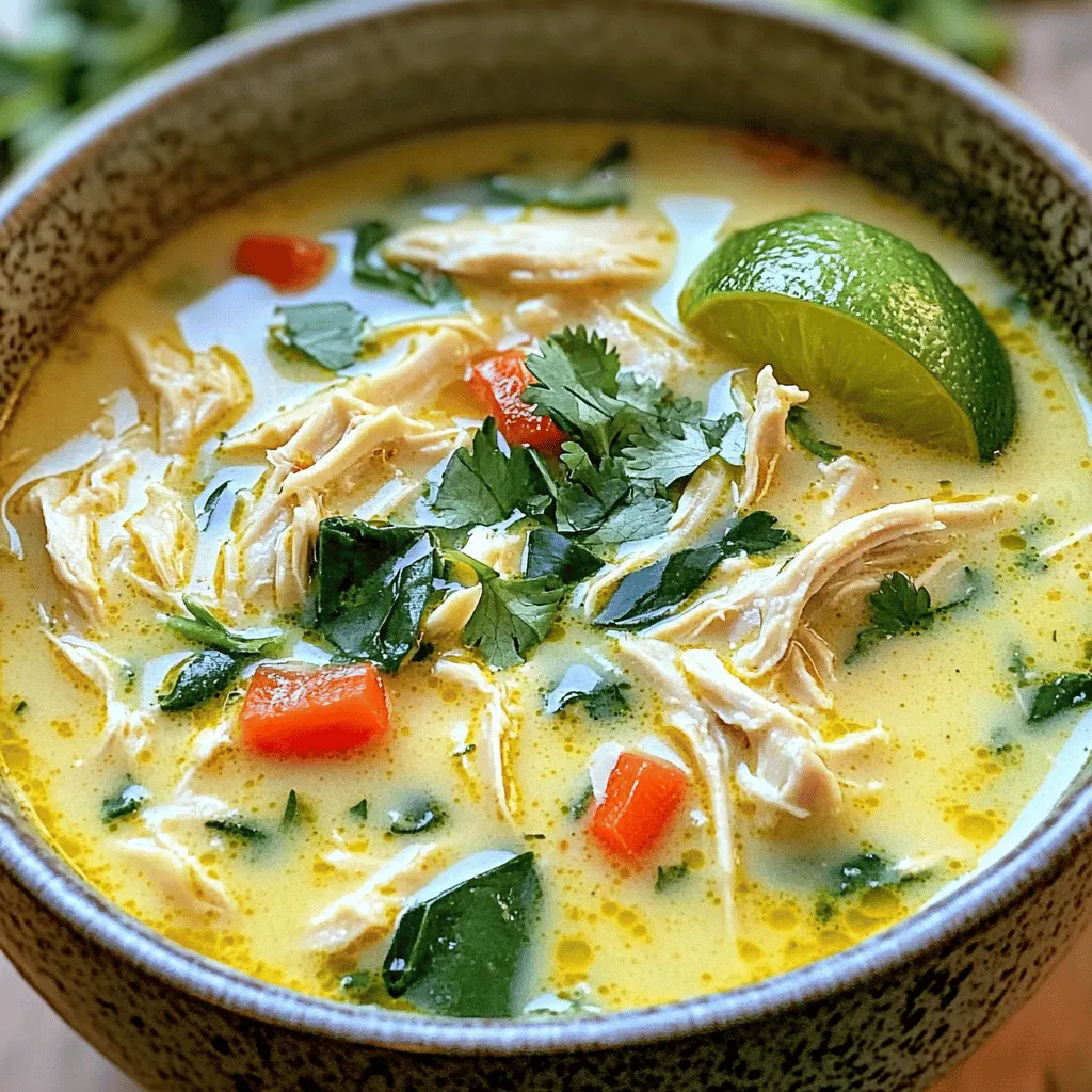 Entdecken Sie die perfekte Mischung aus Aromen mit meiner cremigen Kokos-Limetten-Hühnchen-Suppe. Dieses Rezept kombiniert frisches Hühnchen, aromatische Kokosmilch und einen spritzigen Hauch von Limette. Es ist einfach zuzubereiten und ideal für jede Gelegenheit. Ob zum Geselligkeit oder als leichtes Abendessen, diese Suppe wird Sie verführen. Lassen Sie uns gleich die Zutaten und die einfachen Schritte zur Zubereitung dieser köstlichen Suppe durchgehen!