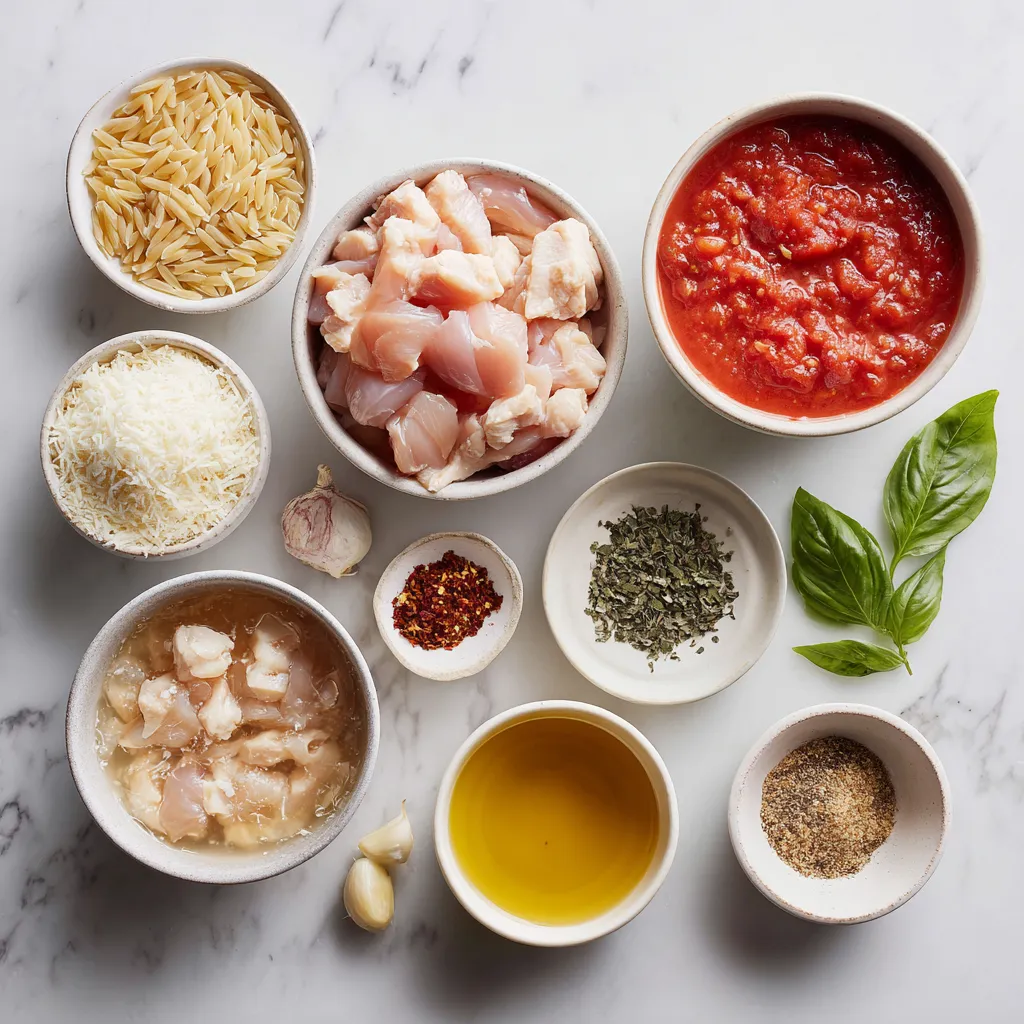 Für cremiges Tomaten-Basilikum-Hähnchen mit Orzo benötigst du:
