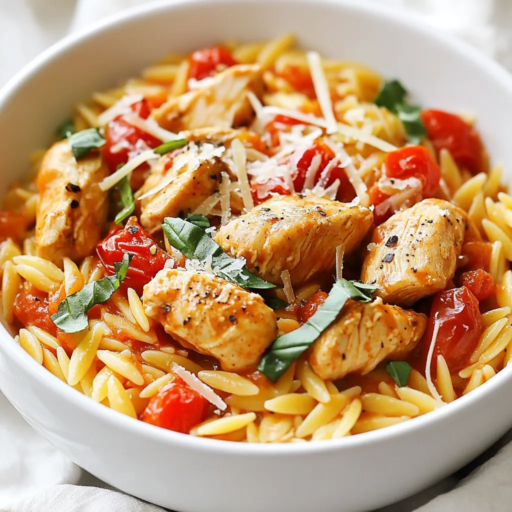 Cremiges Tomaten-Basilikum-Hähnchen Orzo Genuss