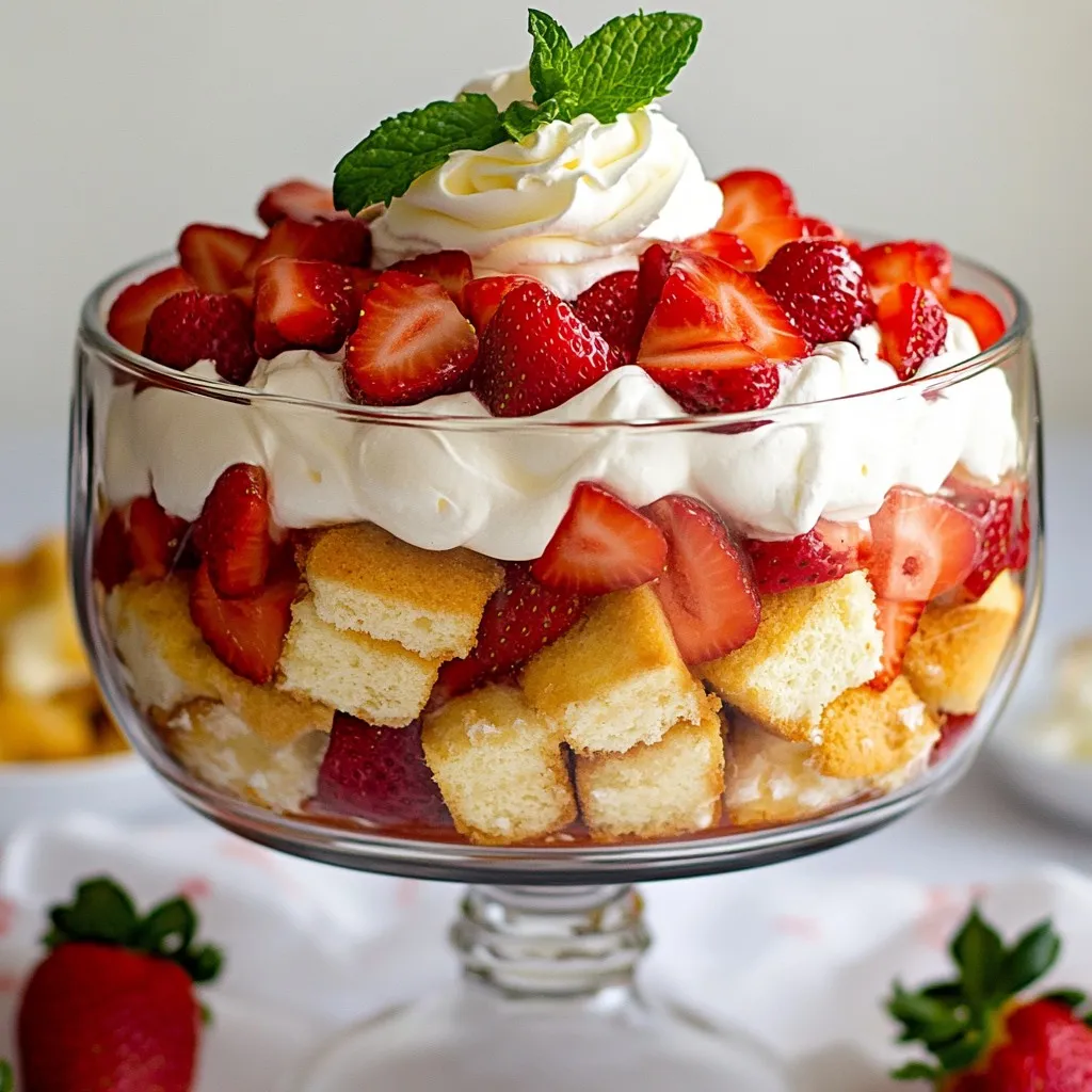 - Garnieren Sie das Trifle mit ein paar zusätzlichen Erdbeerscheiben und frischen Minzblättern für eine ansprechende Präsentation.