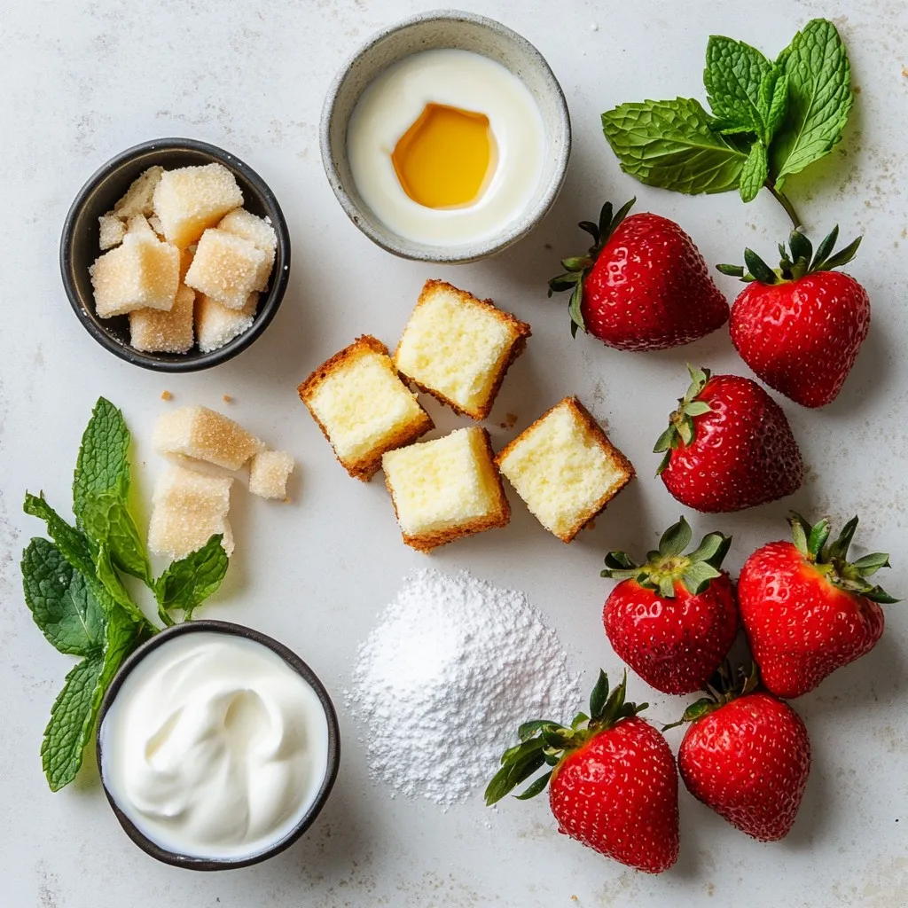 Hauptzutaten für das Erdbeer-Shortcake-Trifle