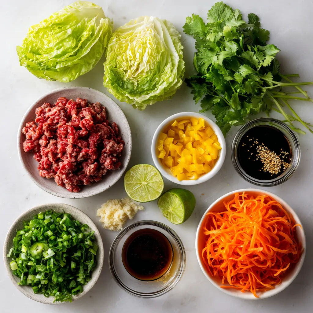 Die Hauptzutaten für die Ginger Garlic Beef Lettuce Boats sind einfach und frisch. Rinderhackfleisch gibt den Booten ihre Basis. Der frische Ingwer und der Knoblauch bringen einen starken, würzigen Geschmack. Sojasauce und Austernsauce geben dem Gericht Tiefe und umhüllen alles mit einer köstlichen Umami-Note.