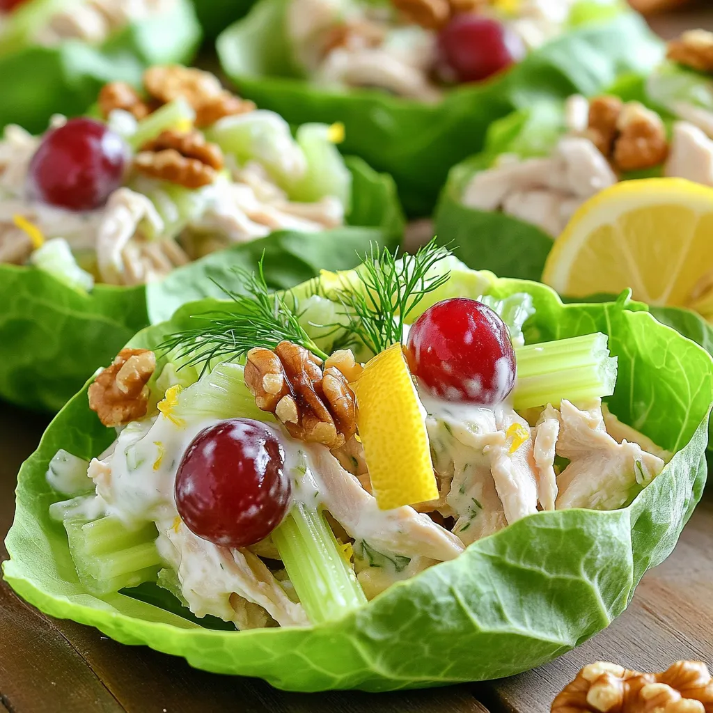 Zum Servieren kannst du frische Salatblätter als Basis verwenden. Löffle die Hähnchen-Joghurt-Mischung darauf. So hast du einen tollen Salat-Wrap! Wenn du magst, garniere mit einer Zitronenscheibe und einem Dillzweig für einen schönen Look.