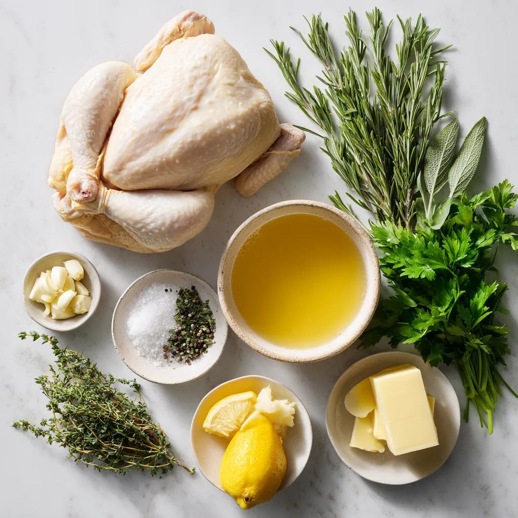 Hauptzutaten für das Kräuterbutter-geröstete Huhn