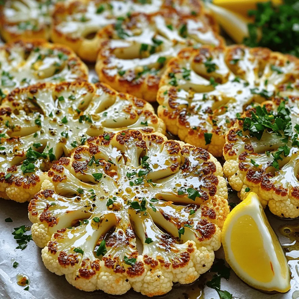 Serviere die Blumenkohlsteaks mit frischer Petersilie und Zitronenspalten. Diese geben dem Gericht einen spritzigen Geschmack. Du kannst auch einen einfachen Salat oder Reis als Beilage wählen. Gegrilltes Gemüse passt ebenfalls gut dazu. Wenn du Fleisch isst, sind sie eine tolle Beilage zu Hähnchen oder Fisch.