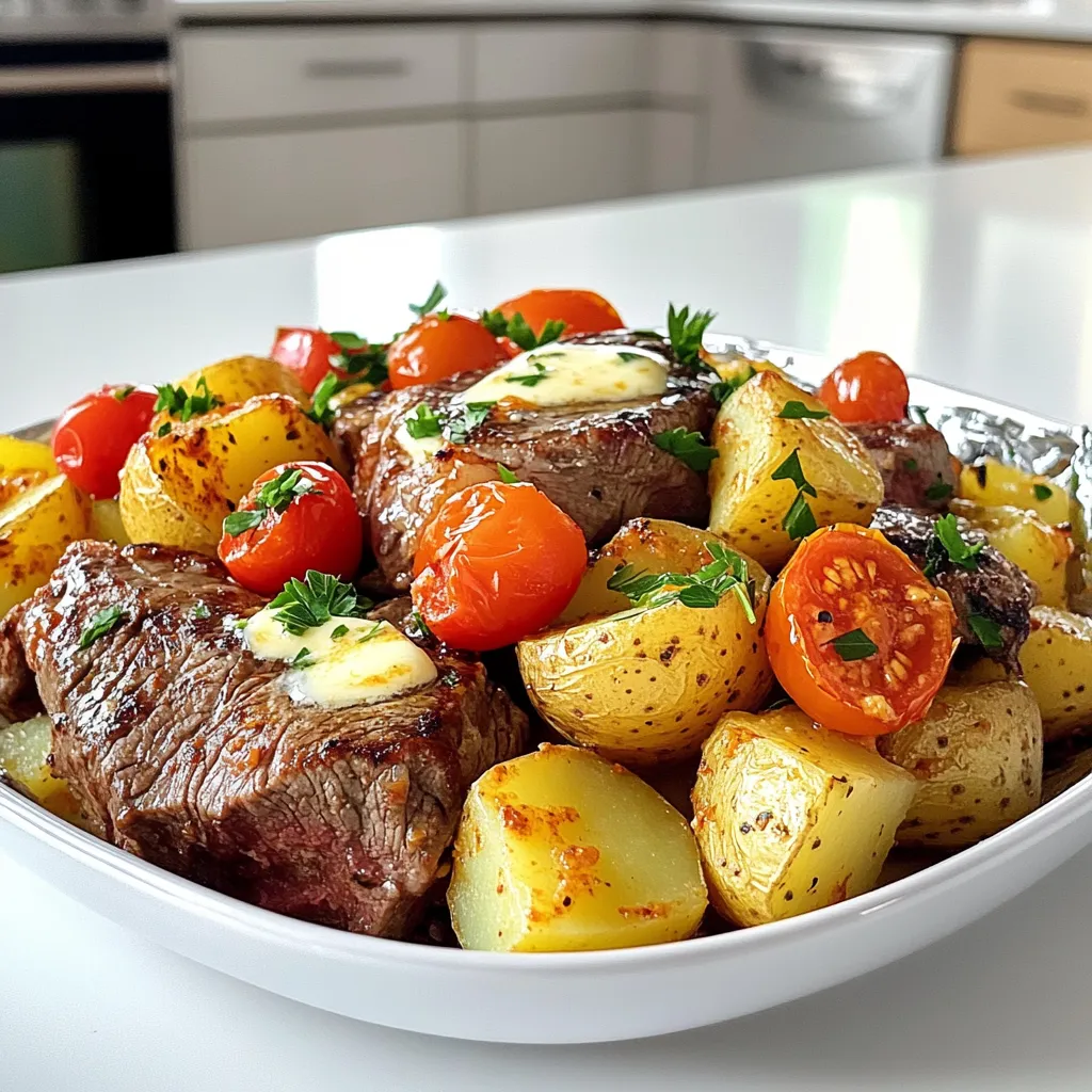 Willkommen zu meinem Rezept für Knoblauchbutter Steak & Kartoffel Folienpackungen! Dieses Gericht vereint zartes Flank Steak, würzige Kartoffeln und frische Kirschtomaten. Mit Knoblauchbutter und einfachen Gewürzen zauberst du ein leckeres Essen, das jeder lieben wird. Lass uns zusammen die Schritte zur Vorbereitung, Zubereitung und leckeren Variationen erkunden. Bereit für diesen Genuss? Lass uns anfangen!
