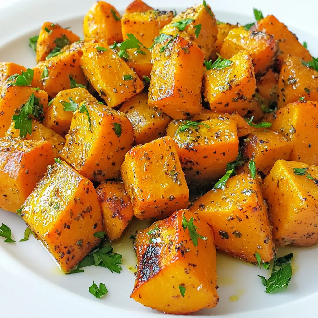 - Übertragen Sie die gerösteten Süßkartoffeln auf eine Servierplatte und bestreuen Sie sie mit frischer gehackter Petersilie, um Farbe und Frische hinzuzufügen.