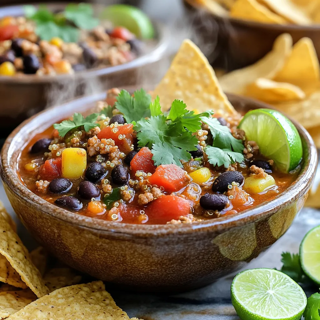 Die Hauptzutaten sind wichtig für den Geschmack. Das gemahlene Truthahnfleisch sorgt für eine zarte Textur. Quinoa bringt einen nussigen Geschmack und ist eine tolle Proteinquelle. Schwarze Bohnen fügen eine cremige Note hinzu und machen das Gericht sättigend.