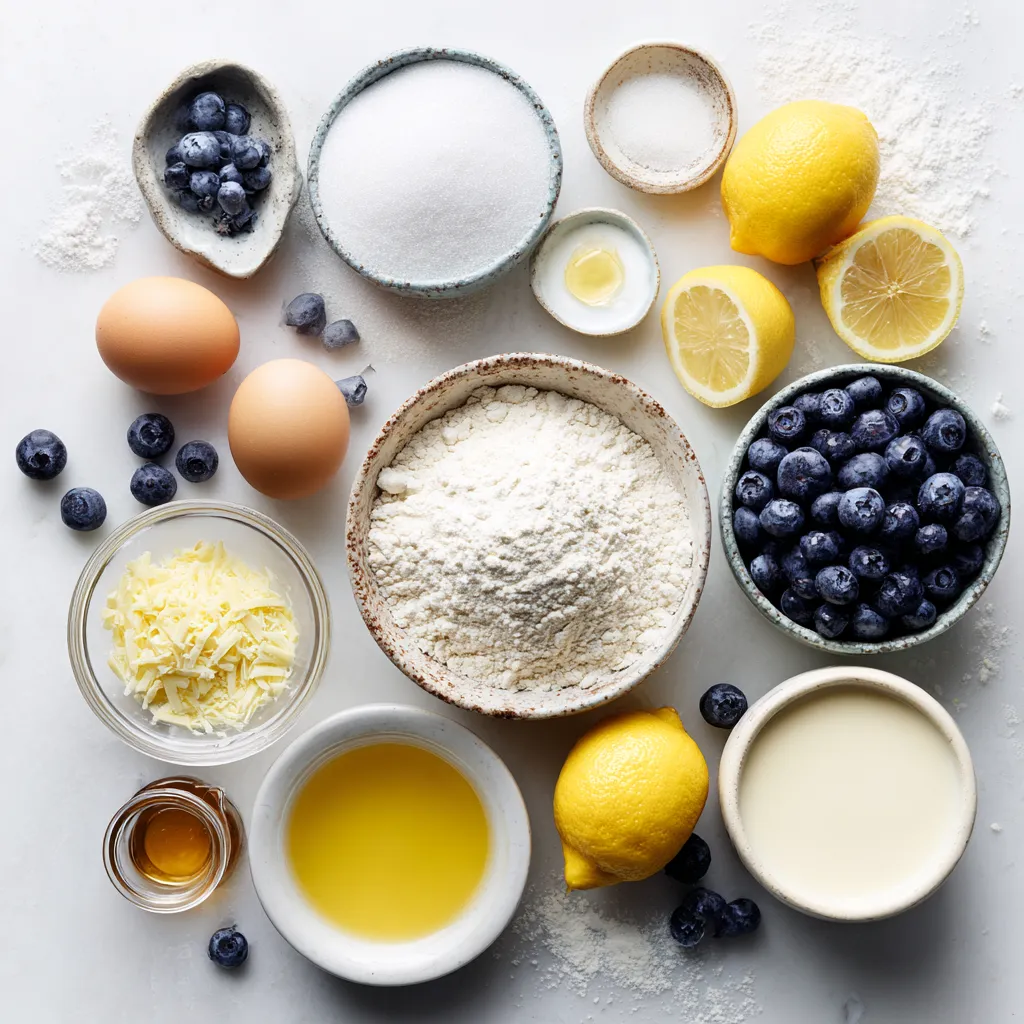 Hauptzutaten für Blaubeer-Zitronen-Muffins