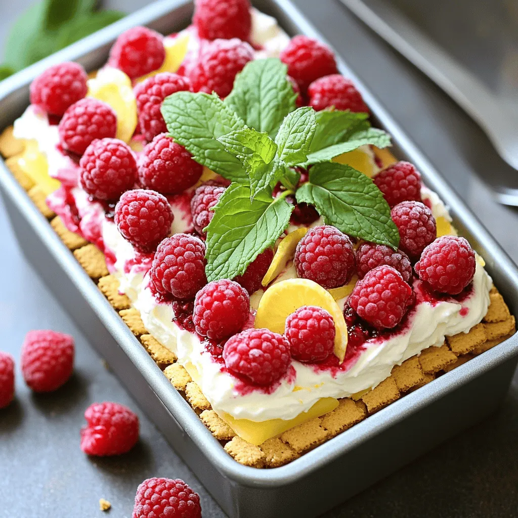 Verleihen Sie Ihrem Dessertbuffet mit diesem erfrischenden Zesty Lemon Raspberry Icebox Cake das besondere Etwas! Mit frischen Himbeeren, cremigem Mascarpone und einem Hauch von Zitrone ist dieser Kuchen einfach zuzubereiten und perfekt für jede Gelegenheit. Entdecken Sie die Schritt-für-Schritt-Anleitung, um Ihre Gäste zu begeistern. Klicken Sie jetzt, um das Rezept zu erkunden und Ihre Krönung des Abends zu planen!