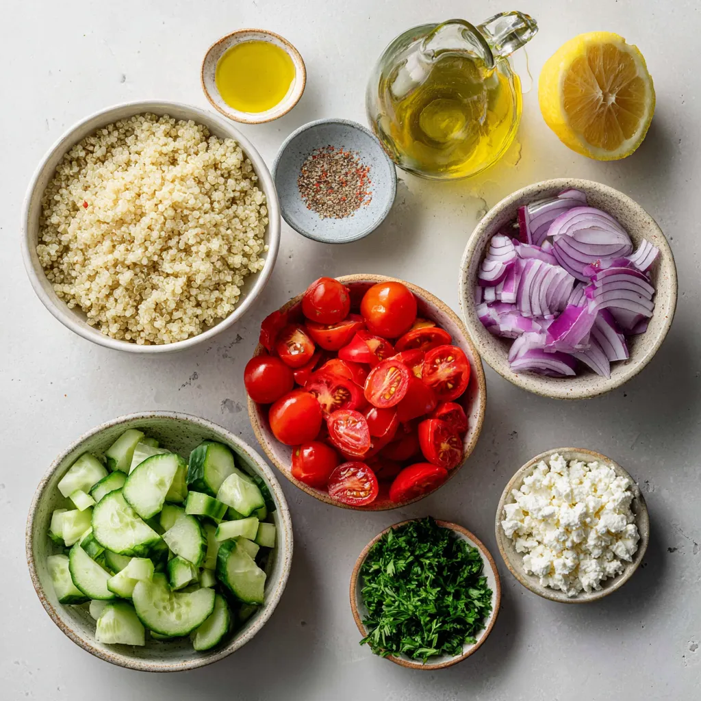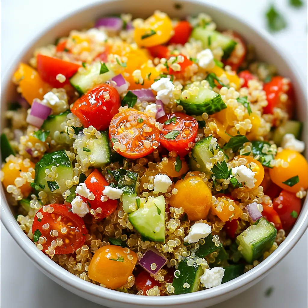 - Gesunde Zutaten: Dieser Salat kombiniert nahrhafte Zutaten wie Quinoa, frisches Gemüse und optionalen Feta-Käse, was ihn zu einer ausgezeichneten Wahl für eine gesunde Ernährung macht.