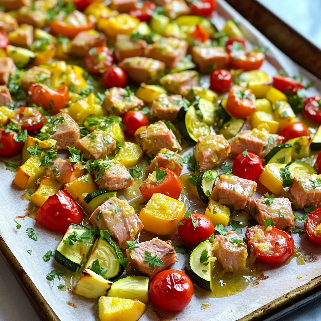 Sheet Pan Lemon Garlic Tuna and Veggies