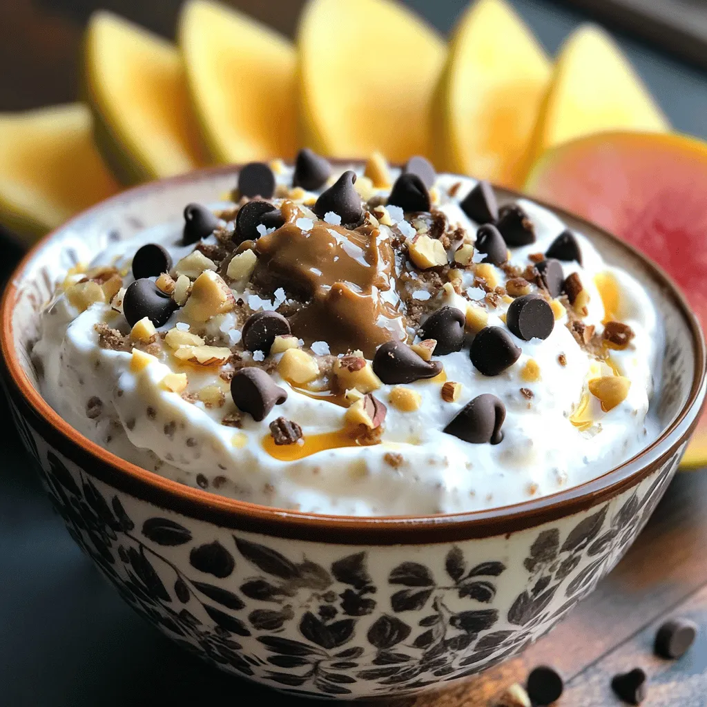 Kühle deinen Keksteig-Joghurt vor dem Servieren. Das macht ihn erfrischend. Garniere ihn mit Schokoladenstückchen oder Nüssen oben drauf. Ein kleiner Schuss Ahornsirup sieht toll aus und schmeckt gut. Um das Dessert lebendiger zu machen, füge frische Obstscheiben hinzu. Eine Prise Meersalz oder Kakaonibs rundet das Ganze ab. So sieht dein Dessert nicht nur gut aus, es schmeckt auch wunderbar!