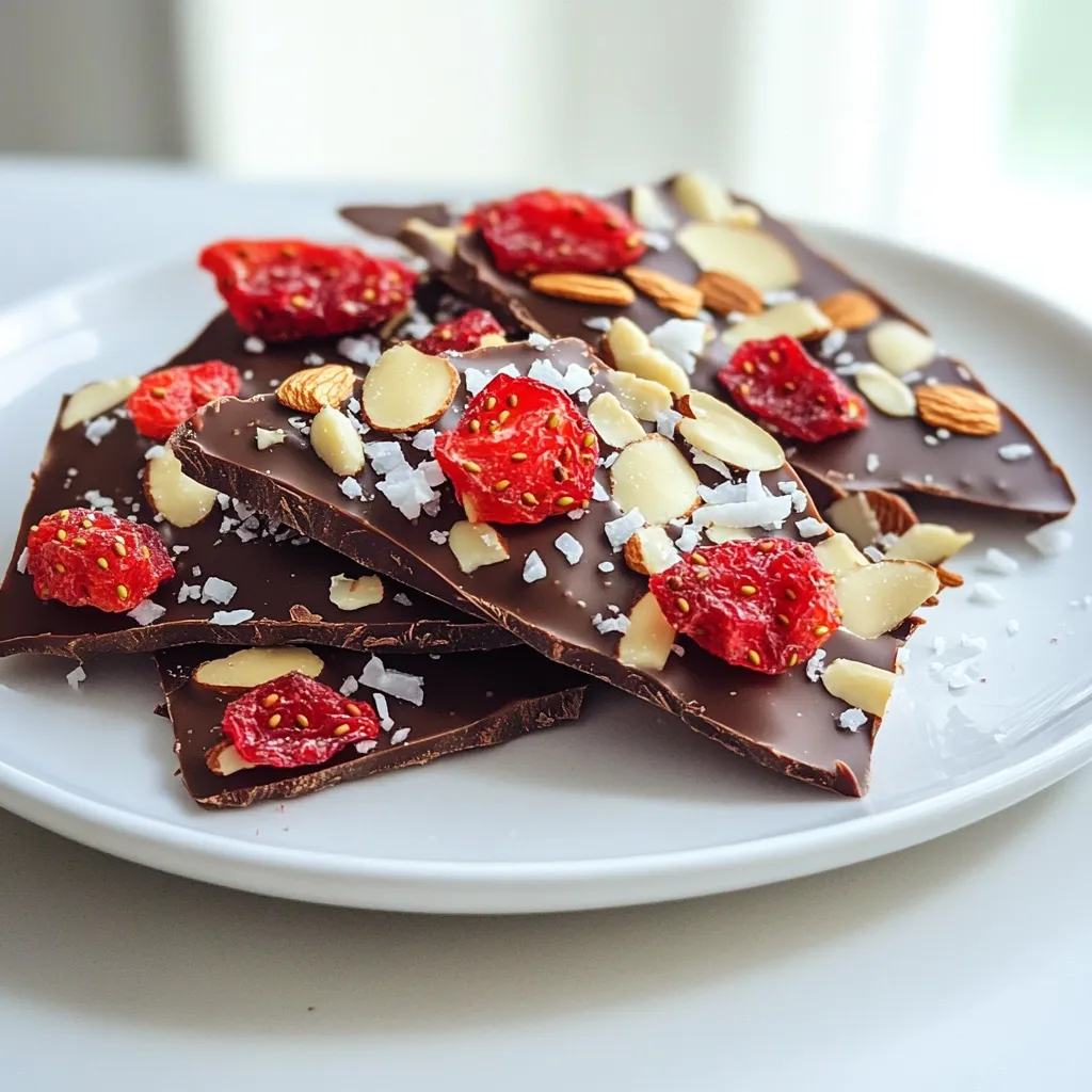 - Präsentationstipps: Servieren Sie die Bark auf einer dekorativen Platte und fügen Sie einige frische Erdbeeren für einen Farbkontrast und eine köstliche Ergänzung hinzu.