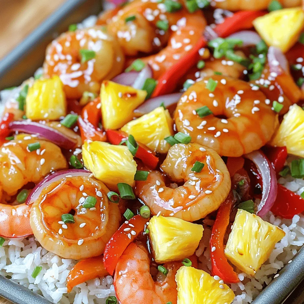 Diese Zutaten bringen frische Aromen und eine schöne Farbe auf deinen Teller. Die Kombination aus Garnelen und Ananas ist ein echter Genuss.