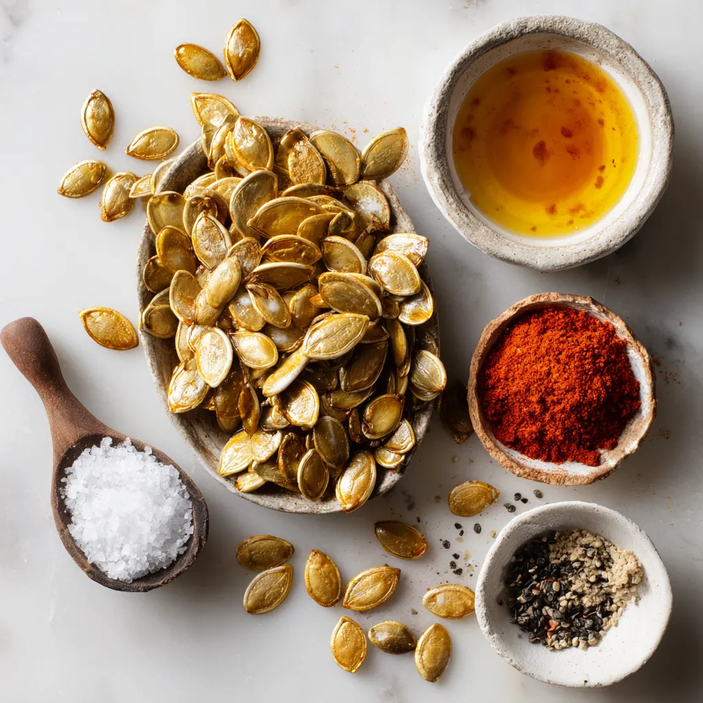 Hauptzutaten für würzige geröstete Kürbiskerne