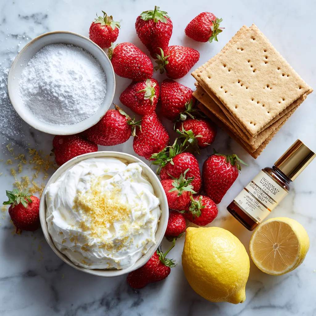 Die Menge der Zutaten ist wichtig für den Geschmack. Verwende frische Erdbeeren für das beste Aroma. Achte darauf, dass der Frischkäse weich ist. So lässt er sich gut vermengen. Der Puderzucker sorgt für die nötige Süße. Vanilleextrakt bringt einen tollen Geschmack. Frische Schlagsahne macht die Füllung leicht und luftig. Graham-Kekse geben dem Kuchen die perfekte Grundlage. Zitrone fügt einen frischen Kick hinzu.