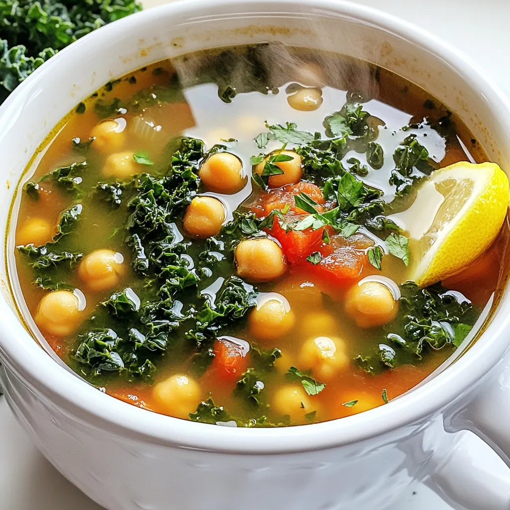 Kichererbsen sind die Basis dieser Suppe. Sie fügen Ballaststoffe und Proteine hinzu. Grünkohl bringt Vitamine und Mineralstoffe. Gemüsebrühe sorgt für Geschmack und Tiefe. Gemeinsam bilden sie eine nahrhafte Grundlage.