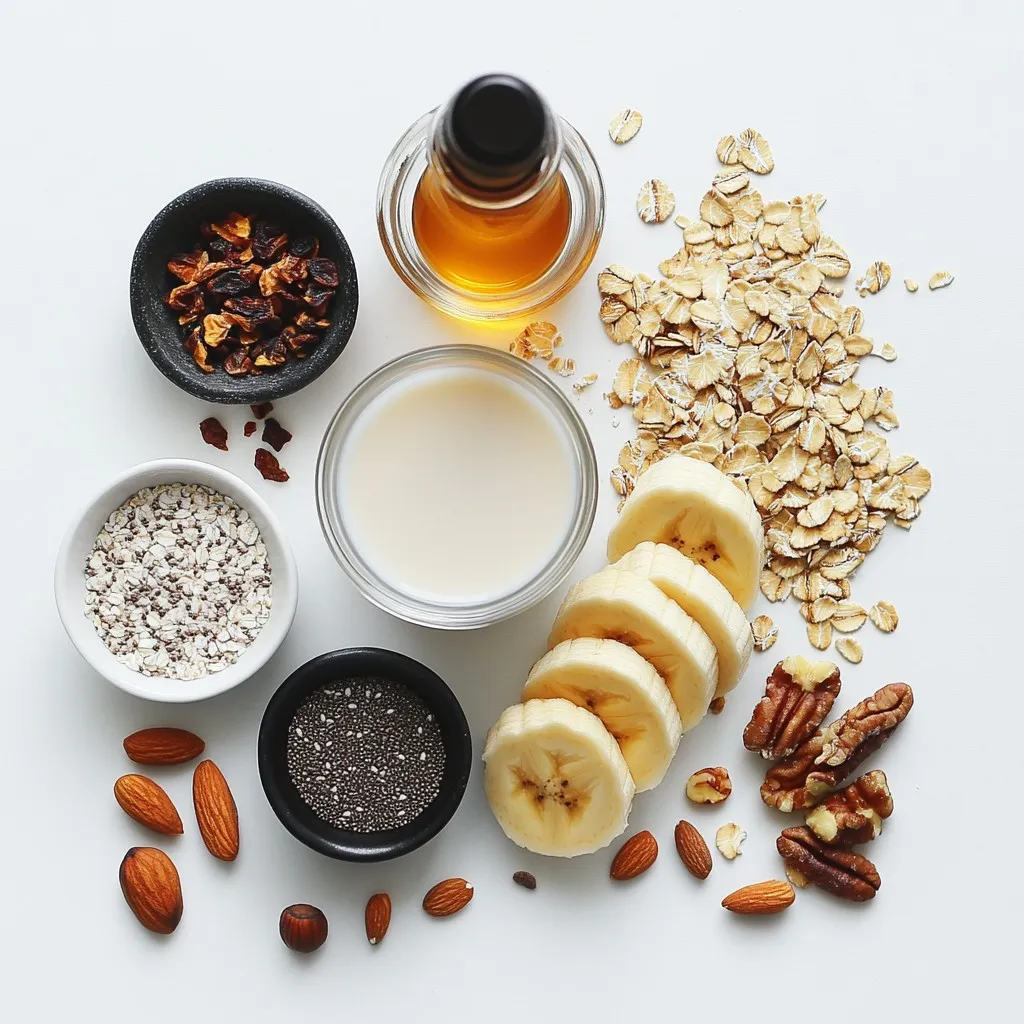 Diese Zutaten verbinden sich gut und ergeben eine cremige Mischung. Haferflocken sind die Basis und geben dir Ballaststoffe. Chiasamen fügen gesunde Fette hinzu und helfen beim Quellen.
