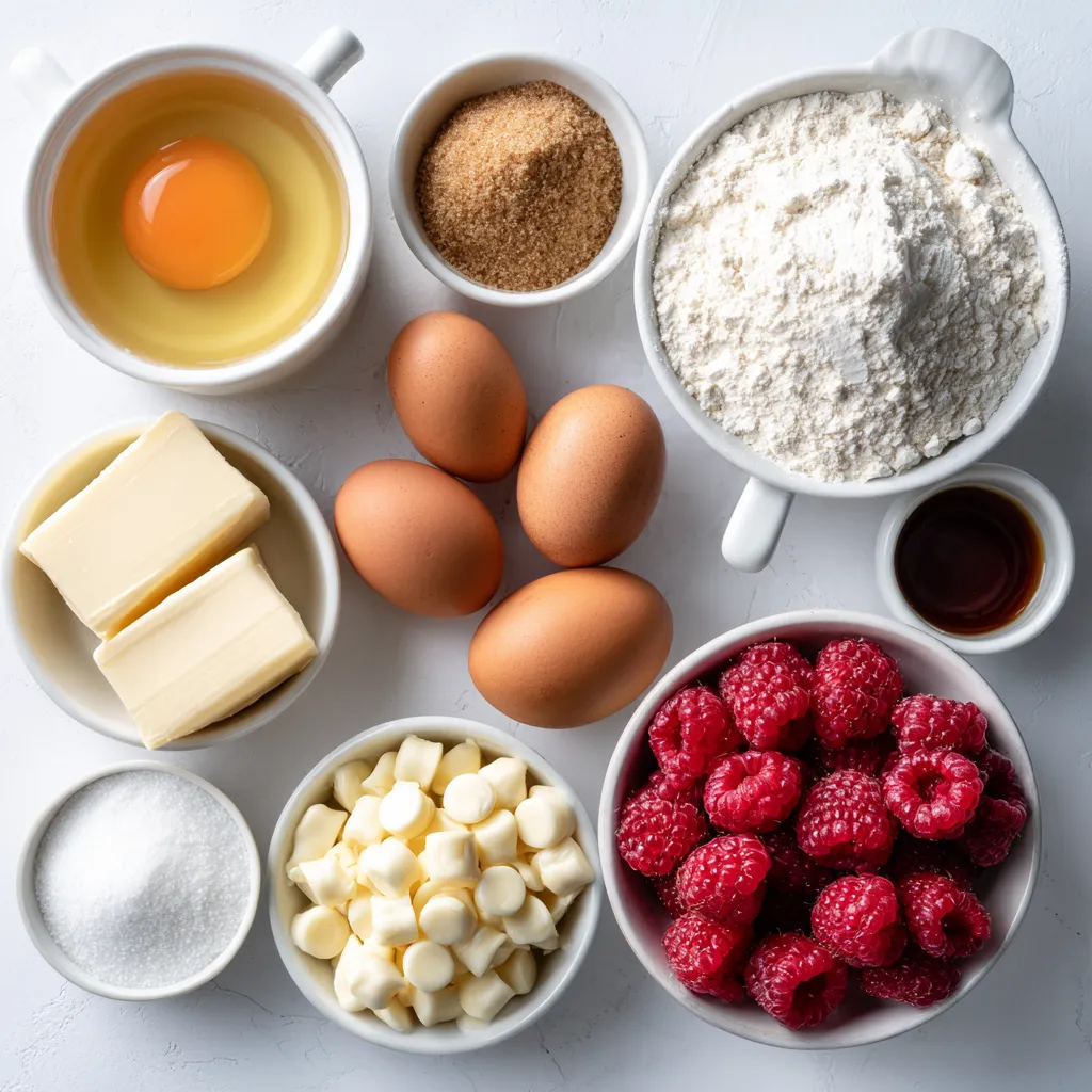 Hauptzutaten für Weiße Schokoladen-Himbeer-Blondies
