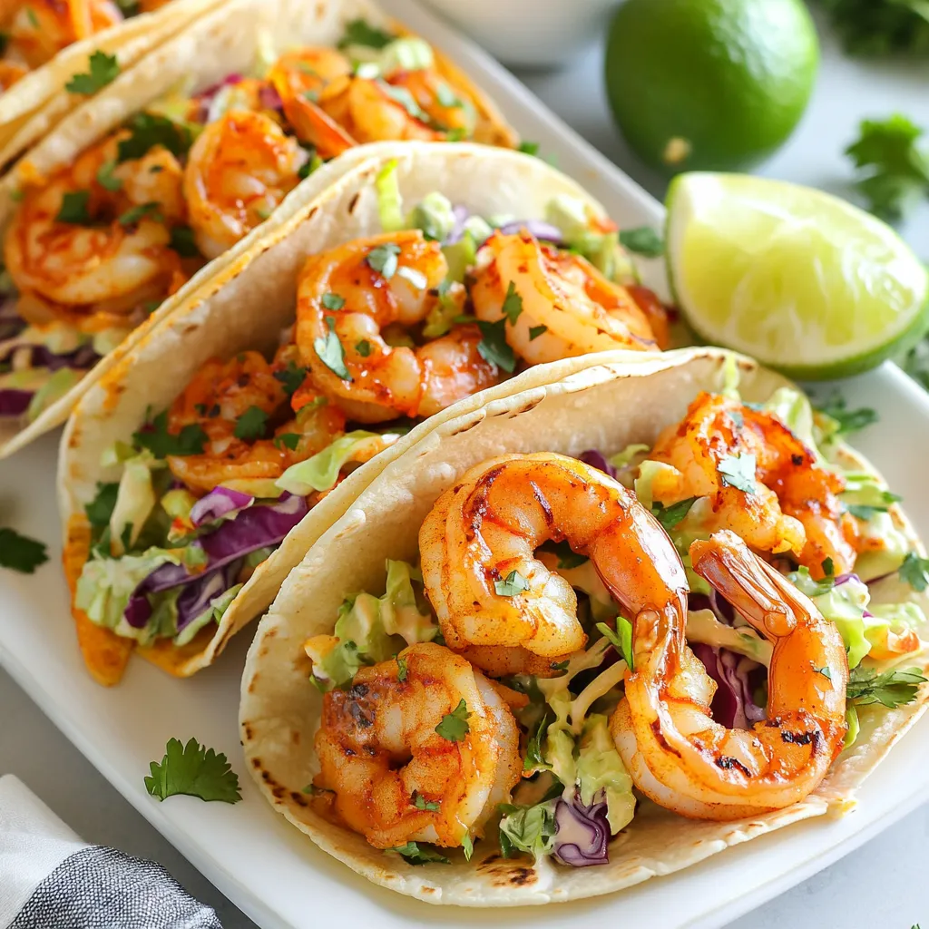 Würzige Garnelen-Tacos mit Koriander-Limetten-Slaw